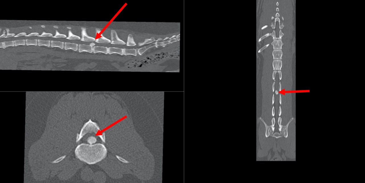 Leider sind auch unsere Haustiere – häufig jüngere kurzbeinige kleine, aber auch große ältere Hunde und selten auch Katzen – von Bewegungsstörungen durch Vorwölbungen der Bandscheibe oder Austritt von Bandscheibenmaterial in Richtung Rückenmark und dessen häutiger sensibler Überzug nicht verschont. Die Folgen sind Schmerzen und Bewegungseinschränkungen bis hin zur vollständiger (Querschnitts-)Lähmung mit Sensibilitätsverlust der Hintergliedmaßen und Funktionsverlust des Harnabsatzes. Da ca. jeder 5. Dackel im Laufe seines Lebens einen Zwischenwirbel-Bandscheibenerkrankung aufweisen kann, heißt diese Erkrankung auch „Dackellähme“. Je nach Schwere der Erkrankung wird eine konservative Therapie (Schmerzmittel und ggf Physiotherapie) oder chirurgische Therapie eingeleitet werden.